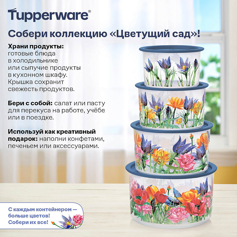 Контейнер «Цветущий сад» (2 л). от Tupperware (Тапервер) в Ташкенте — это удобное, стильное и безопасное решение для хранения продуктов дома. Он позволяет сохранять свежесть сладостей, сухофруктов, чая, специй и маринованных овощей, обеспечивая порядок на кухне. Не упустите возможность купить посуду в Ташкенте, приобрести качественный контейнер для дома — посуда Ташкент всегда радует своим дизайном и долговечностью. Сделайте правильный выбор и купить контейнер в Ташкенте для себя или в подарок!