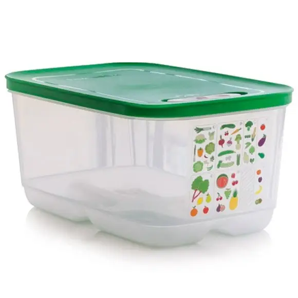 Новый уровень сохранения свежести с контейнером "Умный холодильник" от Tupperware! Этот инновационный контейнер вмещает 4,4 литра продуктов и оснащен уникальной системой вентиляции, которая поддерживает оптимальные условия для вашей зелени, фруктов и овощей.