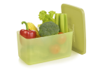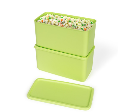 Прямоугольная форма контейнеров разработана для максимальной экономии места. Контейнеры легко размещаются в холодильнике, кухонных шкафах и на полках кладовой. Слегка утопленные крышки позволяют устойчиво ставить контейнеры один на другой, эффективно используя высоту пространства и поддерживая порядок на кухне. Полупрозрачные стенки дают возможность быстро определить содержимое, не открывая крышку.
